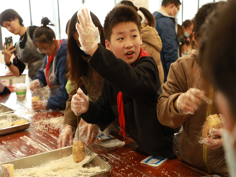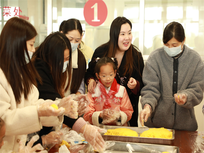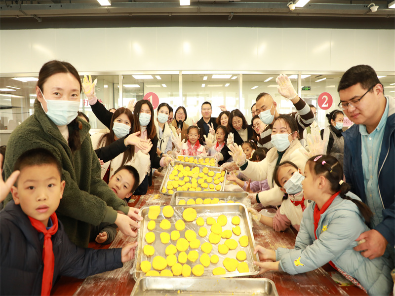 各年级家委会及孩子代表与领导嘉宾共同体验桂花糖藕、甜蜜小圆子、幸福南瓜饼等养生美食的制作,充分感受了制作的乐趣。
