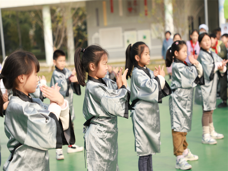 仪式上,徐学妹分享了吴门医派秋冬养生节的快乐历程,二年级学生代表展示了吴门医派健康养生操,钱明坤敲响铜锣,开启了养生美食品鉴之旅。寒来暑往,秋收冬藏,让我们一起养生养心,阳光成长,共享幸福美好生活。